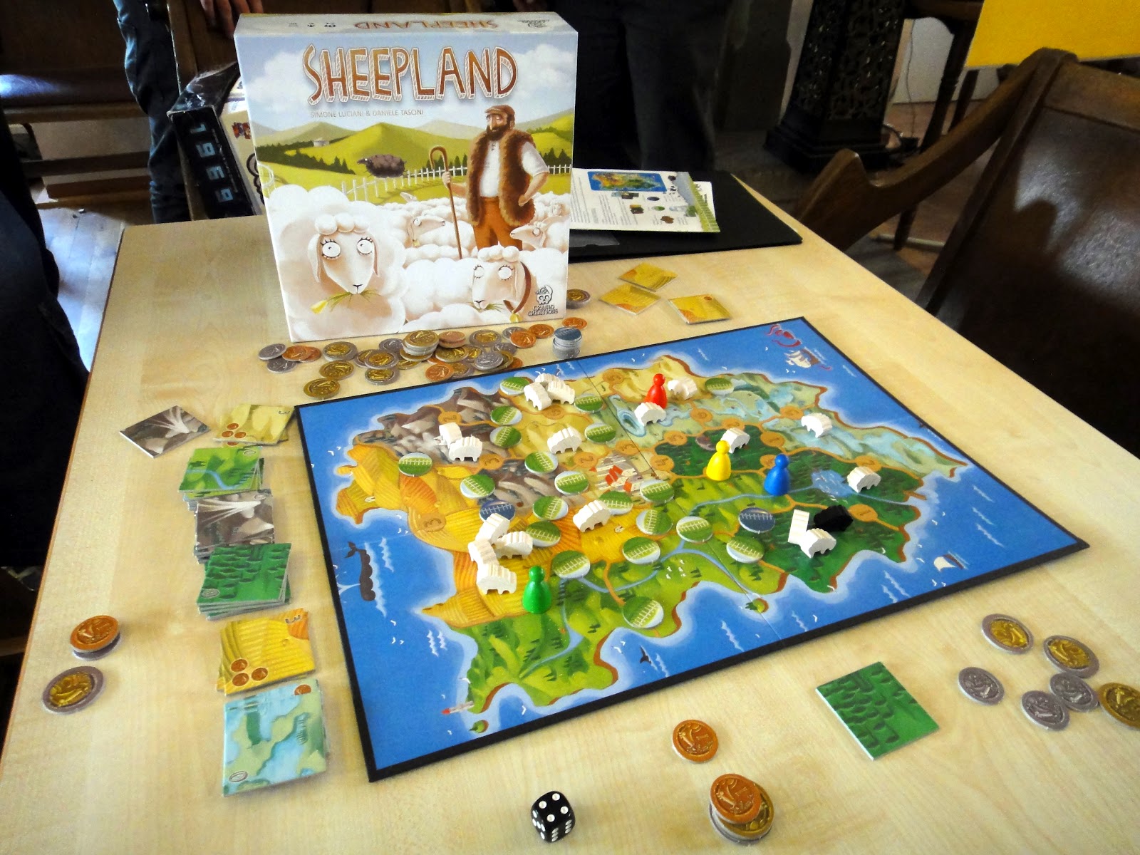 Sheepland von Cranio Creations. In unter 30 Minuten laufen wir mit unserem Schäfer umher und scheuchen Schafe über Weiden. Dabei müssen vorausschauend Anteile am Weideland erworben werden, damit die Vertriebenen schließlich auch für uns zählen: Fünf Schafe auf grün und ich besitze drei Anteile? So schnell macht man 15 Punkte! Wer das legendäre schwarze Schaf einfängt, welches versucht jede Runde auszubüchsen, kommt besonders gut weg. Einfache Mechanik führt zu spannenden Entscheidungen und interaktiven Emotionen – so muss ein Familienspiel sein! Und damit ist es bewiesen: Schäfchenzählen hilft nicht beim Einschlafen…