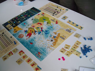 Mit der Einschätzung von Polis habe ich mir sehr viel Zeit gelassen und immer und immer wieder aufs Neue gespielt. Ich glaube, mittlerweile habe ich in etwa verstanden was die von mir wollen und was ich da tue, auch wenn es immer noch nicht einwandfrei klappen mag. Polis sieht aus wie das typische Kampfspiel: Weltkarte mit Kriegern und Schiffen drauf, Kampf- und Ereigniskarten, Athen gegen Sparta und ein Würfel. Solche Spiele mag ich für gewöhnlich überhaupt nicht. Der Eindruck täuscht.